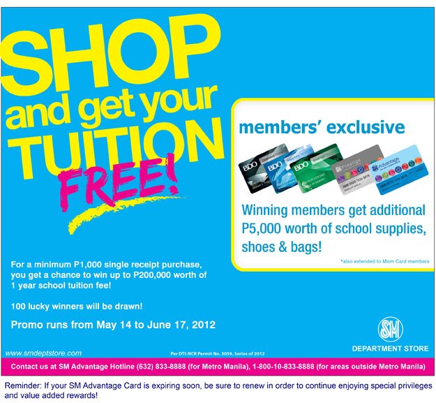 tuition fee for a minimum P1,000 single-receipt purchase at SM